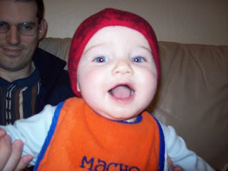 Here are some pictures of Ian over the past few days. He is just continually getting bigger! He rolls around all of over the place. Exhibit A: Ian rolled off the blanket I had him on, spit up on the carpet rolled around in the spit up then rolled back on to his back! Here he is with spit up all over his face!